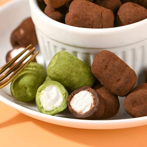 These cocoa-coated marshmallows combine fluffy softness with a layer of chocolate powder, creating a sweet balance of flavors. Their chewy texture and smooth coating make them a premium confectionery choice.